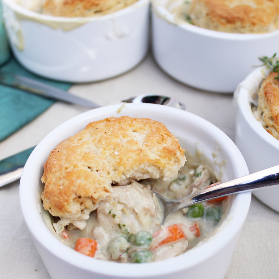 Ladle the creamy chicken mixture into bowls and top with biscuits for a warm, nourishing family dinner.