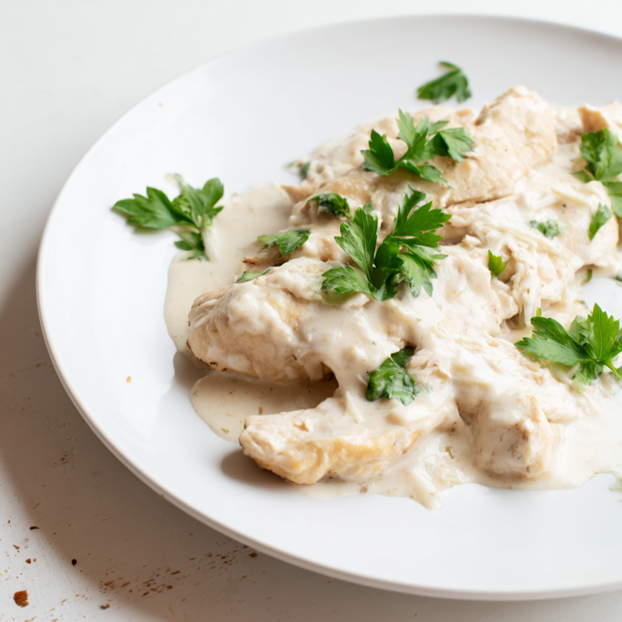 Plate the chicken over rice, pasta, or enjoy it with bread. Garnish with fresh parsley for an elegant finish.