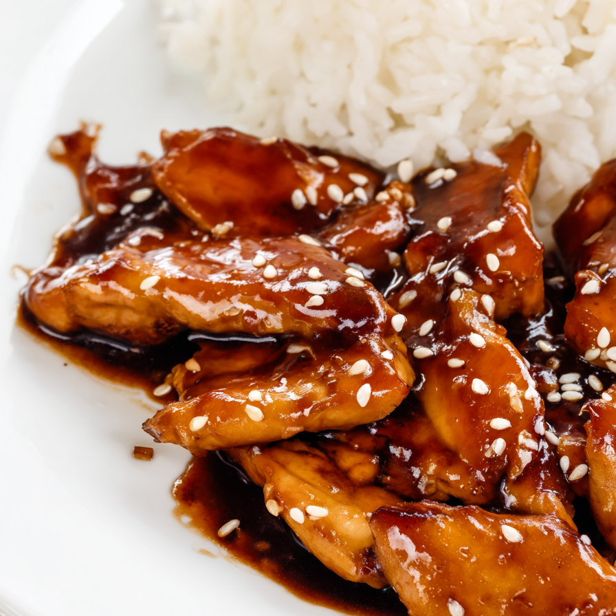 Spoon the teriyaki chicken over rice, drizzle with extra sauce, and sprinkle with sesame seeds for an elegant finish.