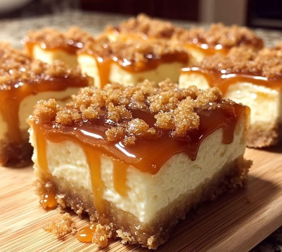 - Cool caramel slightly, then drizzle over sliced bars before serving.