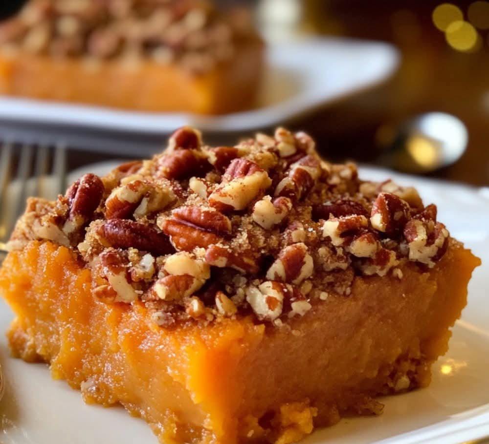 Sprinkle the pecan mixture evenly over the sweet potato base.