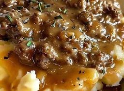 Ground Beef and Gravy Over Mashed Potatoes