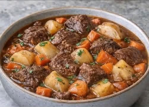 Add carrots and potatoes to the stew. Continue simmering for another 30–40 minutes, or until vegetables are tender and beef is fall-apart tender.