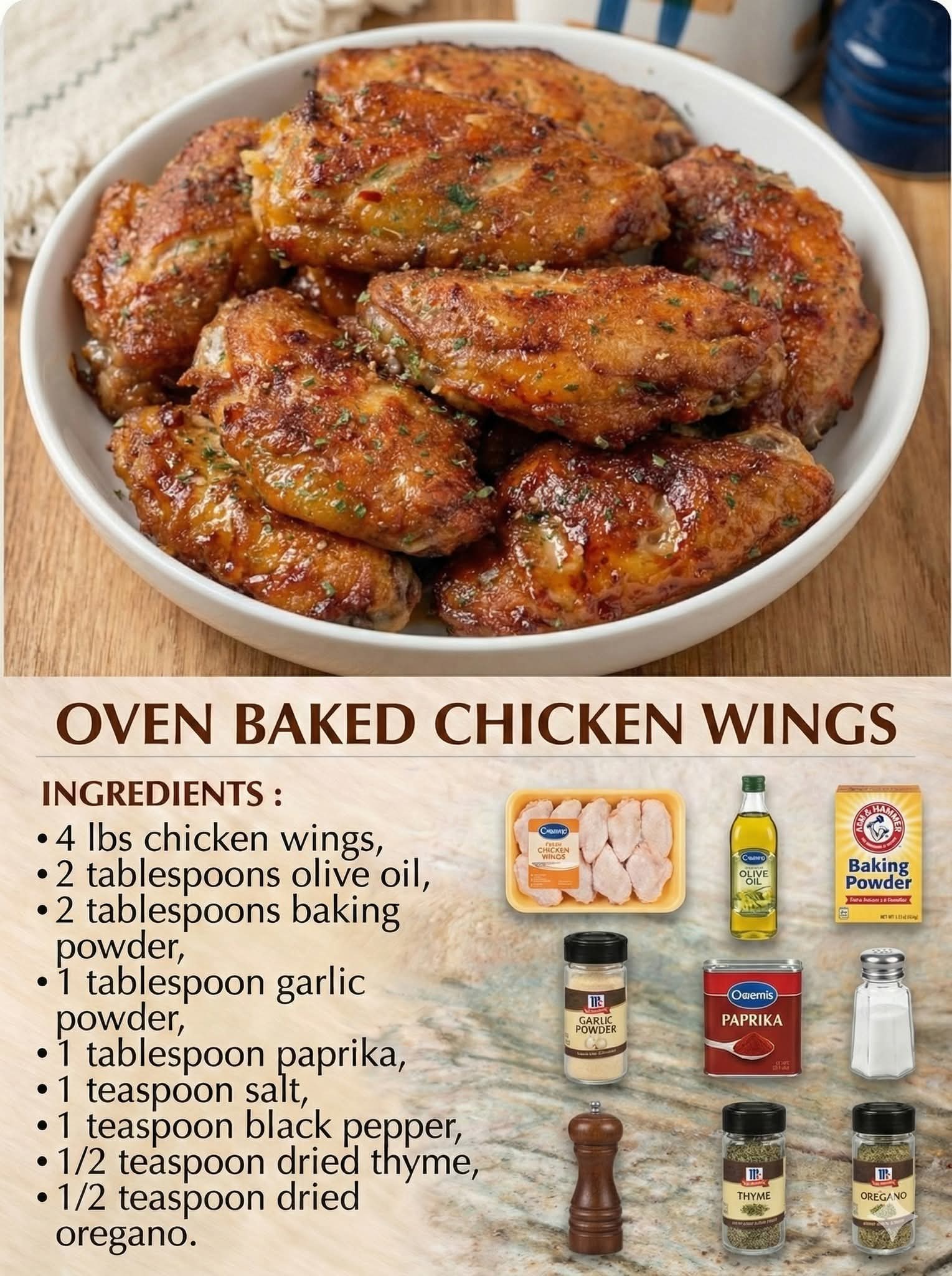 These Oven Baked Chicken Wings are crispy on the outside, juicy on the inside, and packed with bold flavor — all without deep frying. Perfect for game day, family dinners, parties, or weeknight meals, this easy baked chicken wings recipe delivers restaurant-quality results right from your oven. With simple ingredients and foolproof steps, these wings come out golden, crunchy, and irresistibly delicious every time.Chicken recipe collection