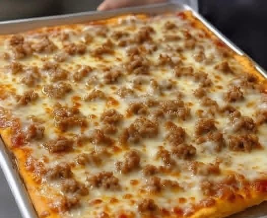 Press the dough evenly into a greased sheet pan or pizza pan.